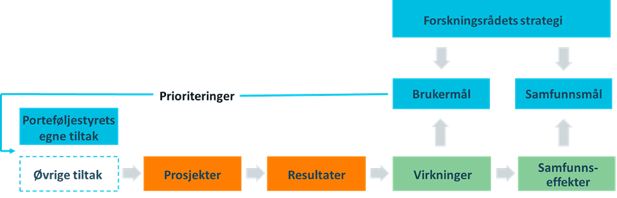Tiltak skal resultere i spesifiserte virkninger og samfunnseffekter i henhold til en investeringslogikk (Figur 1). Se vedlegg 1 for en fremstilling av denne porteføljens investeringslogikk.